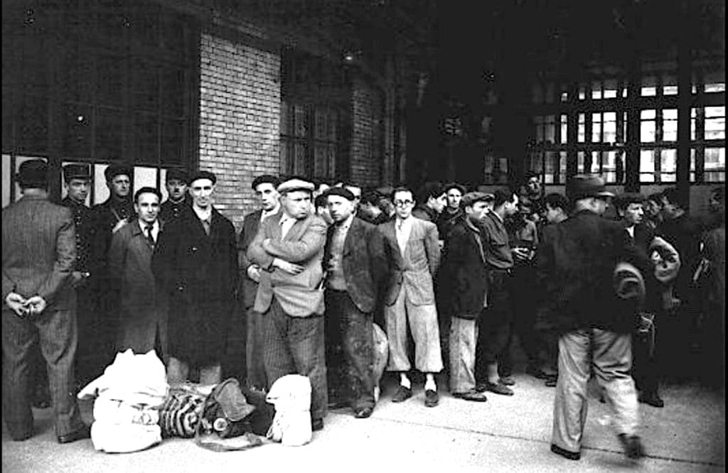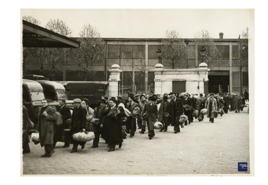 Juifs étrangers conduits à la gare d’Austerlitz à Paris, le 14 mai 1941, d’où ils seront dirigés vers les camps de Pithiviers et Beaune-la-Rolande (Loiret).