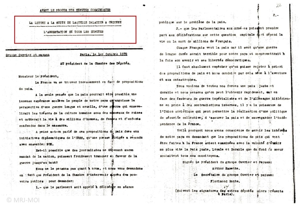 Le PCF est désorganisé par la mobilisation générale et affaibli par les défections dans ses rangs après le Pacte germano-soviétique et le tournant « anti-impérialiste » qui efface la distinction entre les pays démocratiques (France et Grande – Bretagne) et les régimes fascistes (Allemagne, Italie). Menacé par les arrestations de ses membres, le PCF doit mettre en place des structures illégales permettant d’assurer la sécurité de ses cadres, leur subsistance et les liaisons entre militants.