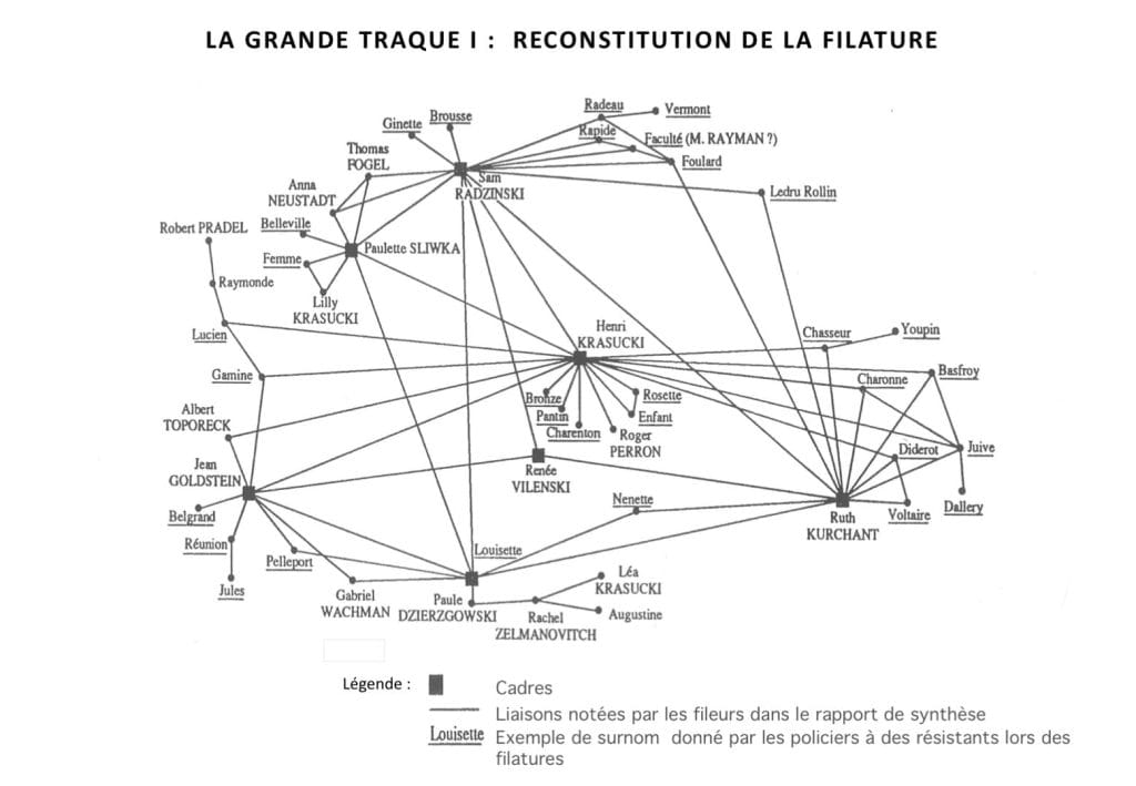 Reconstitution de la 1ère filature des membres parisiens de l’organisation de la jeunesse communiste juive par les policiers des Brigades spéciales (janvier à mars 1943), d’après des rapports de police.