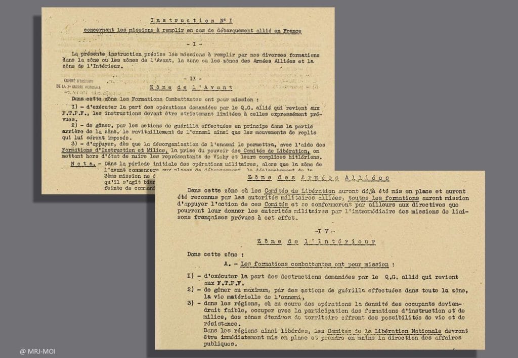 Instructions aux « formations combattantes » des FTPF pour la lutte armée au moment du débarquement des Alliés (printemps 1944).