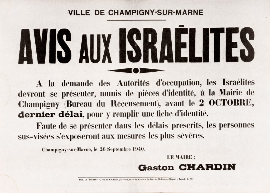 Le 26 septembre 1940, la mairie de Champigny-sur-Marne, à la demande des Allemands, entreprend le recensement des « Israélites ».
