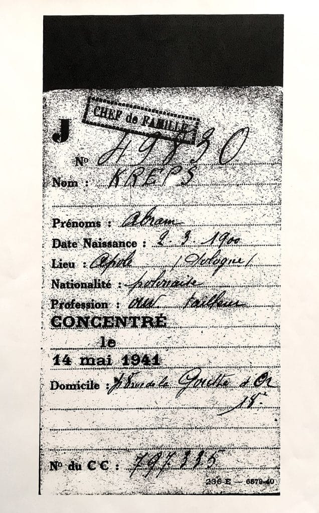 Fiche de « concentration » d’Abram Kreps, Juif polonais, suite à la convocation du « billet vert ».